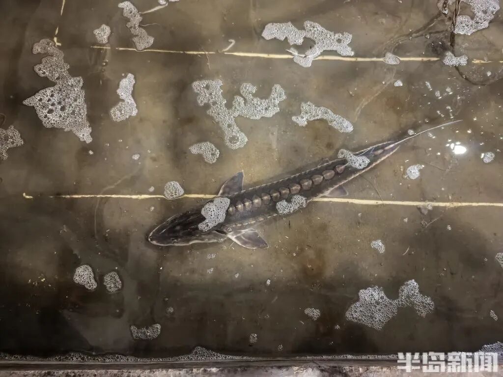 最近几年,长江流域中华鲟增殖放流的数量比较多。它们沿着长江一路向东进入大海,会追着食物寻找适合的海域。这条鱼可能就是为了觅食,游到了这里。